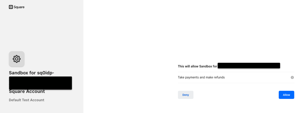 Instead, you must open the Sandbox Square Dashboard for a Sandbox test account in a separate web page and then use the authorization URL to open the Square authorization page.